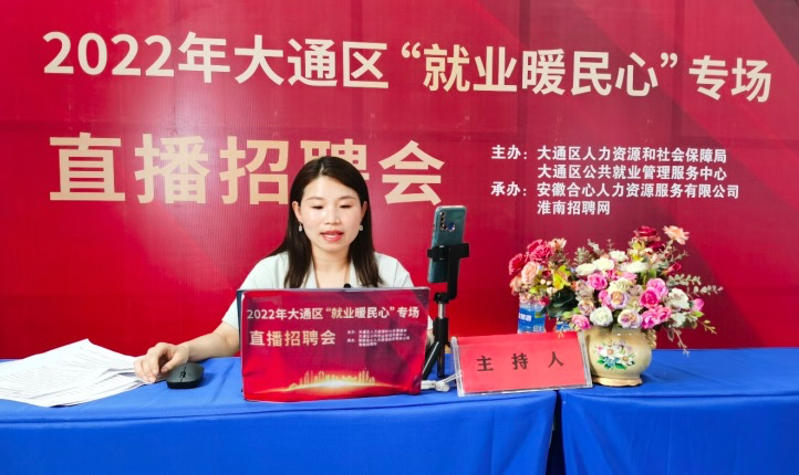 8月23日下午,安徽合心人力资源有限公司举办了2022年大通区“直播带岗 暖心行动”专场招聘会。此次直播活动服务对象主要针对2022年离校未就业高校毕业生,有就业意向的求职帮扶人员;以及有招聘需求的大通工业园区和上窑工业集聚区用工紧缺企业和受疫情影响的各类中小微企业等。