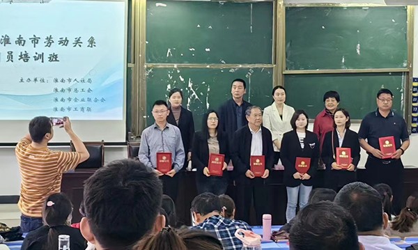6月5日上午,淮南市2023年度劳动关系协调员第一期培训在淮南职业技术学院开班。集团人力资源事业部成员赴培训班进行学习。来自全市各企业的人事管理者、劳资负责人等共计203人参加了培训。结束后,通过认定考试将取得劳动关系协调员证书。开班仪式上,市协调劳动关系三方四家对11名2022年度安徽省金牌劳动关系协调员、1家2022年度安徽省金牌劳动关系社会组织予以授牌,提出金牌劳动关系协调员能珍惜荣誉,发挥示范引领作用,将企业发展与维护劳动者权益有机结合的思想方针。集团将持续加强专业化、规范化劳动关系协调队伍建设,紧盯“十四五”时期构建和谐劳动关系工作目标任务,把握劳动关系协调员队伍建设具体要求,积极响应政府号召,为促进全市劳动关系和谐稳定贡献自己的一份社会力量.