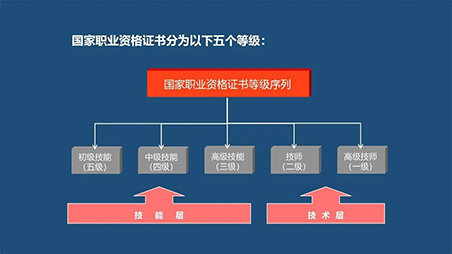 职业技能等级一般分为初级工(五级)、中级工(四级)、高级工(三级)、技师(二级)和高级技师(一级)五个级别。