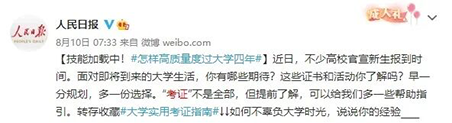 这意味着大学生可以根据自己的兴趣和职业规划,选择适合自己且有发展前景的职业进行学习和认证。