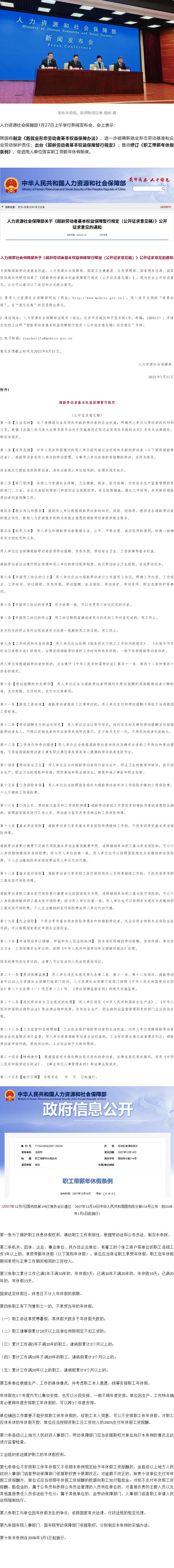 最新! 人社部: 将出台《超龄劳动者基本权益保障暂行规定》,修订《职工带薪年休假条例》