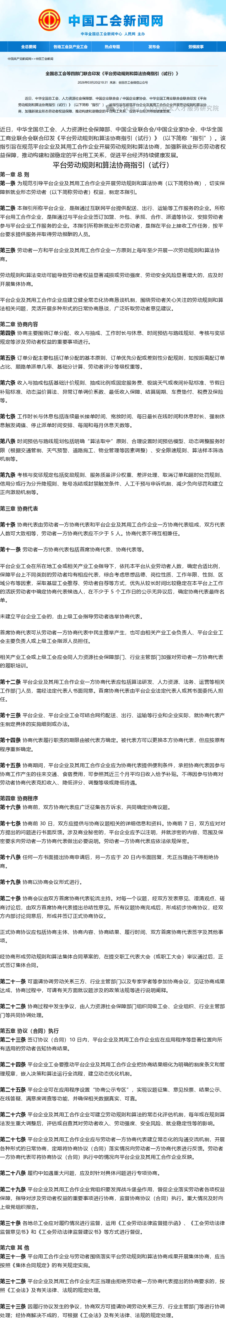 【重磅】人社部等四部门印发《平台劳动规则和算法协商指引(试行)》