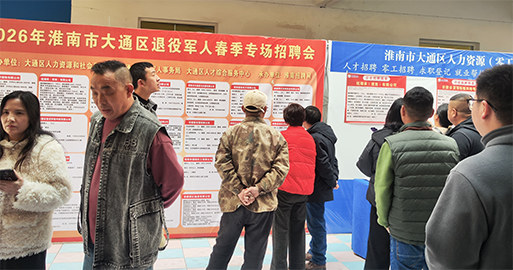 为深入贯彻落实党中央、国务院稳就业决策部署和省、市、区有关工作要求,扎实做好退役军人等重点群体就业服务工作,大通区将于2026年3月20日(周五)下午2:30在大通区零工市场举办2026年淮南市大通区退役军人春季专场招聘会。